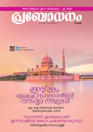 Weekly Islamic magazine published in Malayalam from Kozhikode.Affiliated to the Kerala Branch of Jamaat-e-Islami Hind.The publisher of Prabodhanam is Islamic Services Trust based in Kozhikode.