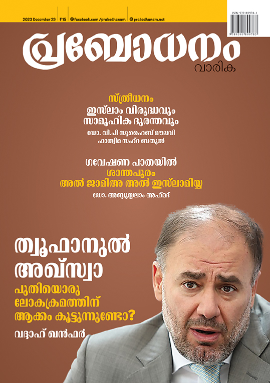 Weekly Islamic magazine published in Malayalam from Kozhikode.Affiliated to the Kerala Branch of Jamaat-e-Islami Hind.The publisher of Prabodhanam is Islamic Services Trust based in Kozhikode.